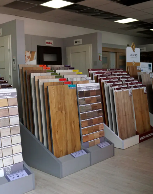 Nasz salon oferuje obszerną gamę podłóg, w tym eleganckie podłogi drewniane, trwałe laminaty oraz nowoczesne pokrycia winylowe. W naszej ofercie znajdą Państwo także szeroki wybór drzwi – od modeli wewnętrznych po zewnętrzne i techniczne.